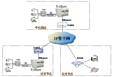 對于銀行、公安這樣的行業(yè)或者大企業(yè)來講,由于比較重視信息化的建設(shè),大都擁有專用的電話通信網(wǎng)和數(shù)據(jù)通信網(wǎng)。電話通信網(wǎng)一般是采用自建電話交換機(PBX)、租用電信部門的中繼線的方式實現(xiàn)的;而數(shù)據(jù)通信網(wǎng)則需要另外租用DDN專線或其他租用線來實現(xiàn)的。這樣,企業(yè)和行業(yè)用戶不僅要在線路租費上需要更大的開支,而且在使用和維護上也有很多不便。信息技術(shù),特別是光纖技術(shù)和Internet技術(shù)的發(fā)展,使大企業(yè)、行業(yè)用戶有能力建設(shè)專用的IP寬帶骨干網(wǎng),用于綜合傳送語音、數(shù)據(jù)和圖象業(yè)務(wù)。而如何將原有的話音網(wǎng)改造成IP電話網(wǎng),使它能夠在IP寬帶骨干網(wǎng)上傳送,將是企業(yè)和行業(yè)用戶進行網(wǎng)絡(luò)改造時所關(guān)心的一個重要問題。