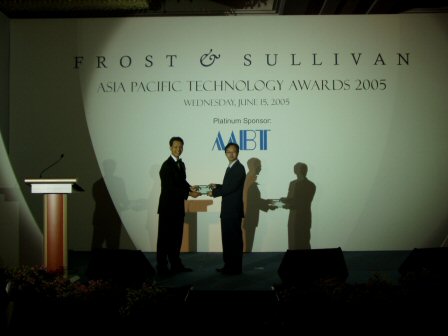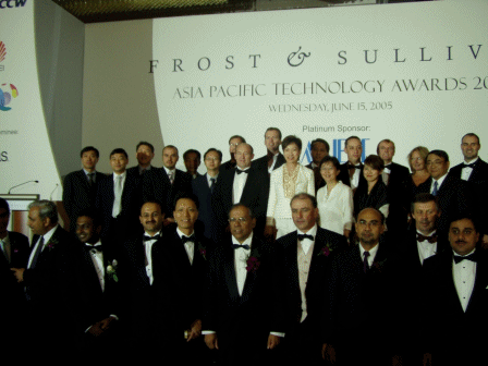 新加坡CommunicAsia2005展會期間,2005年6月15日晚—新加坡香格里拉飯店燈火輝煌,全球通信行業(yè)的精英公司濟(jì)濟(jì)一堂,共同見證了亞太地區(qū)一年一度的Frost & Sullivan亞太區(qū)技術(shù)大獎(jiǎng)的頒獎(jiǎng)禮的盛況。晚會期間共產(chǎn)生了6項(xiàng)運(yùn)營商獎(jiǎng)項(xiàng)和11項(xiàng)供應(yīng)商獎(jiǎng)項(xiàng)。