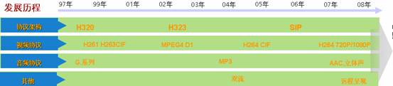 多媒體會議主要提供語音、視頻、數(shù)據(jù)的融合會議解決方案。傳統(tǒng)的多媒體會議在2001年前主要是專線(E1/ISDN)H.320的視頻會議系統(tǒng)。隨著寬帶(LAN/ADSL)的發(fā)展,2002年至2007年主要是H.323的視頻會議系統(tǒng),同時(shí)兼容H.320的專線視頻會議系統(tǒng)。2007年前音頻的主要是8k采樣的G.7xx協(xié)議,2007年后寬頻語音AAC-LD已經(jīng)普遍使用。視頻2007年前主要是4CIF格式以下的標(biāo)清系統(tǒng),2007年后H264