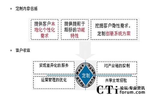 可定制服務(wù)主要體現(xiàn)在三個層面,一個是定制化服務(wù),通過全國10多個本地定制開發(fā)中心對客戶提供貼身二次開發(fā)服務(wù),支撐客戶更精細(xì)運(yùn)營其客服系統(tǒng),另一個是定制化路標(biāo),定制化創(chuàng)新系統(tǒng)方案,即通過華為MKT、行銷、開發(fā)部門對客戶價值需求的深度分析,將客戶需求去粗存精、去偽存真、由表及里、由此及彼“定制提煉”出來,成為我們產(chǎn)品和方案的路標(biāo)。