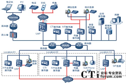 華為多媒體聯(lián)絡(luò)中心提供完善的分布式組網(wǎng)及集中式組網(wǎng)功能,可以提供分布式接入、分布式IVR、分布式錄音系統(tǒng)、分布式坐席、分布式傳真系統(tǒng)及網(wǎng)絡(luò)呼叫中心技術(shù)。如果各個分支機(jī)構(gòu)有較多本地化業(yè)務(wù)需求的時候,各個分支機(jī)構(gòu)只需要再配置一臺CTI服務(wù)器,就可以升級成完整的聯(lián)絡(luò)中心系統(tǒng),可以單獨(dú)開展豐富的個性化業(yè)務(wù)。如果總部再安裝一套網(wǎng)絡(luò)呼叫中心,則可以實現(xiàn)聯(lián)絡(luò)中心的互連,即網(wǎng)絡(luò)呼叫中心。