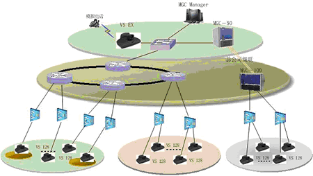 一般來說,在省公司同時(shí)參與會(huì)議的人數(shù)較多,考慮配置比較大的系統(tǒng),由某一領(lǐng)導(dǎo)召集一些相關(guān)成員在此開會(huì);在地市公司同時(shí)參與會(huì)議的人數(shù)較少,只是一些主要領(lǐng)導(dǎo)參加會(huì)議,考慮配置比較小的系統(tǒng);同時(shí),為了實(shí)現(xiàn)終端之間管理和傳送音頻、視頻和數(shù)據(jù),需要MCU來協(xié)調(diào)終端的工作,并與上級MCU相級聯(lián),擴(kuò)大會(huì)議的規(guī)模。另外,可以增加一套T.120服務(wù)器,該系統(tǒng)是利用多媒體技術(shù)幫助使用者對工作中的各種信息進(jìn)行處理,如共享數(shù)據(jù)、共享應(yīng)用程序、實(shí)現(xiàn)文件的雙向傳輸?shù),從而?gòu)造出一個(gè)多人共享的工作空間。以及增加一套VOD系統(tǒng),它集視頻采集、點(diǎn)播、廣播于一體,這樣就可以將視頻會(huì)議的內(nèi)容實(shí)時(shí)的錄制到本地,也可將一些培訓(xùn)資料放在視頻點(diǎn)播里,便于對貴公司員工進(jìn)行培訓(xùn),還能通過視頻廣播的功能,讓使用PC機(jī)的人員不在會(huì)議室,便可以通過瀏覽器實(shí)時(shí)的看到和聽到正在召開的會(huì)議。