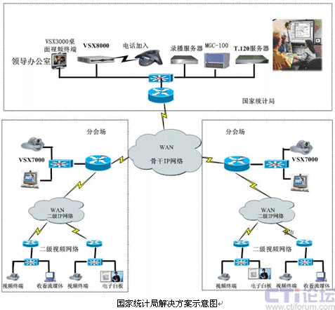 為了貫徹國務院對政府系統(tǒng)信息化建設的要求,徹底實現(xiàn)“政務辦公及行業(yè)管理信息服務的電子化、網(wǎng)絡化”的行政管理體制要求,更充分利用現(xiàn)有的網(wǎng)絡資源,提高自動化管理水平,統(tǒng)計局決定開展中國統(tǒng)計局信息化建設視頻會議工程建設。該工程采用H.323/SIP協(xié)議,構(gòu)建于統(tǒng)計局全國骨干IP專用網(wǎng)絡之上,可實現(xiàn)企業(yè)內(nèi)的實時交談、召開會議及信息共享等。