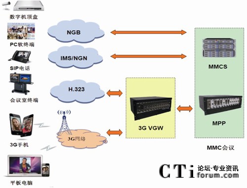 - 良好的開放性:多媒體系統(tǒng)基于SIP協(xié)議來(lái)設(shè)計(jì)和實(shí)現(xiàn),可與IMS/NGN/NGB系統(tǒng)無(wú)縫對(duì)接,包括3G手機(jī)在內(nèi)的各種IMS/NGN/NGB終端可以同時(shí)加入會(huì)議。