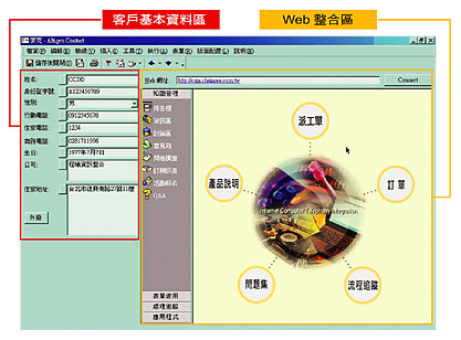 AltiGen可整合Web機(jī)制,Web為全世界Internet的標(biāo)準(zhǔn)介面,更是整合全球資源達(dá)無(wú)遠(yuǎn)弗屆境界的功臣,同時(shí)企業(yè)主可在其上輕易開發(fā)或整合其他程式,更可整合Web跑單 (Work Flow)、訂單等功能,使用者可一邊與客戶通話,一邊在電腦螢?zāi)簧舷掠唵位蚍峙晒ぷ鳎?jié)省人工跑單作業(yè)時(shí)間,提升作業(yè)效率,同時(shí)對(duì)于跑單狀況的追蹤管理皆可在統(tǒng)一介面獲得整合,任何更新的進(jìn)度都可第一時(shí)間掌握。