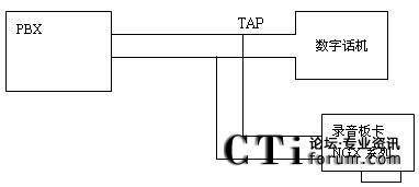 針對上圖所示的錄音,PBX到TAP(錄音點(diǎn))的距離、TAP到數(shù)字話機(jī)距離,以及TAP至錄音板卡之間的距離針對不同的交換機(jī)而不同。因?yàn)殡S著線路長度的增加,數(shù)字信號傳輸時有一個信號衰減的問題,這一點(diǎn)在現(xiàn)場實(shí)施時尤其要注意。具體要求如下: