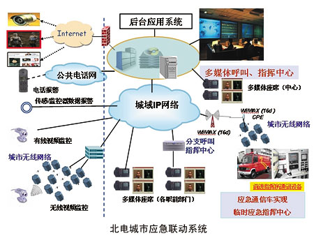 建設一個完整的城市應急系統(tǒng),應以“三警合一”的警用緊急報警指揮調度系統(tǒng)為基礎,即110 匪警報警系統(tǒng)、 119 火警報警系統(tǒng)、 122 交通事故報警系統(tǒng)。工程的目標是要將城市應急系統(tǒng)中心建成一個集話音、數據、圖像為一體,以信息網絡為基礎、各系統(tǒng)有機互動為特點的綜合城市應急聯(lián)動指揮信息系統(tǒng),將把現(xiàn)有的公安110、消防119、交警122、醫(yī)療急救等指揮中心,整合到應急聯(lián)動指揮中心。