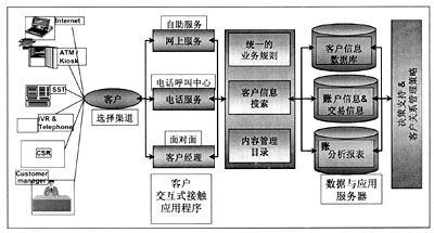 保證客戶信息的充分共享,滿足銀行發(fā)展的需要,最重要的是要建立完整、統(tǒng)一的客戶服務(wù)平臺(tái),這也是銀行建設(shè)客戶關(guān)系管理系統(tǒng)的基礎(chǔ),完善的、適用于銀行業(yè)的客戶服務(wù)平臺(tái)應(yīng)當(dāng)包括三個(gè)部分: