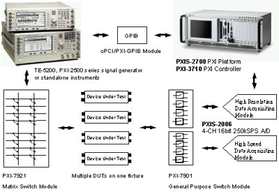 PXI控制器并搭載了Pentium III處理器。使用者可以自眾多PXI訊號(hào)產(chǎn)生模塊選擇所需,或搭配外接式儀器透過PXI-GPIB控制卡聯(lián)機(jī)。被測(cè)物(DUT)產(chǎn)生的特性參數(shù)、傳遞函數(shù)或時(shí)域信號(hào),可采用PXI-2000、TE-6100等高性能數(shù)據(jù)擷取卡進(jìn)行采樣。而后藉由ADLINK