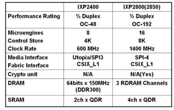 Intel XP-2XXX系列網(wǎng)絡(luò)處理器大致包含:IXP-2400、IXP-2800及IXP-2850,請參考表一的性能差異。除此之外,Intel還考慮比照了IXP-42X系列的做法,高度整合MACs等功能模塊,建造優(yōu)異的性價(jià)比產(chǎn)品,使這一系列處理器的應(yīng)用更普及化。