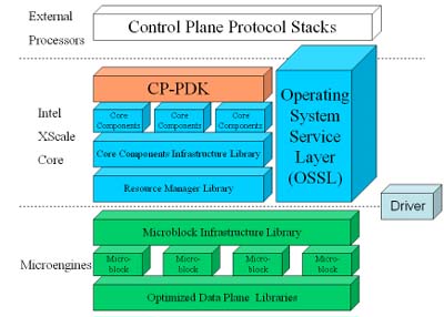 32-bit XScale來負(fù)責(zé)Control Plane的處理工作,XScale執(zhí)行相當(dāng)?shù)讓拥目刂乒ぷ鳎ㄐ畔魉,還有跟系統(tǒng)內(nèi)其它處理器的溝通。Data