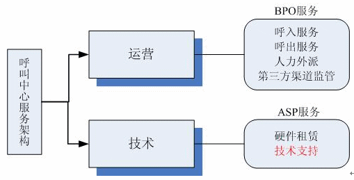 Call Center)之后出現(xiàn)的新型模式,它的投資和操作模式介于自己建設和外包兩種模式之間,租用設備和技術(shù),而座席代表是公司自己的,是呼叫中心平臺資源的出租。對于呼叫中心而言,呼叫平臺資源不僅僅指硬件平臺,同時包括軟件技術(shù)支持。很多ASP提供商和ASP委托方狹隘的理解把ASP服務定位于租賃、物理資源的外包,顯然局限了ASP的發(fā)展。