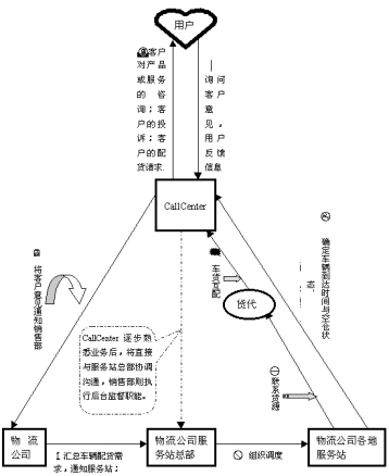顧客打入電話至呼叫中心,要求提供貨源,或者要求提供車源。座席人員通過網(wǎng)絡(luò)調(diào)出現(xiàn)有貨物和車輛的情況,通過電話幫助顧客填寫貨單,并通知車主和貨主相互聯(lián)系,從而節(jié)省運(yùn)、供貨的時(shí)間。