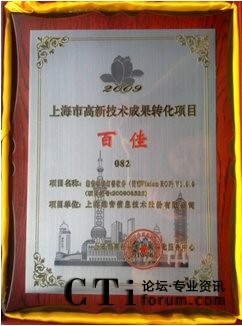 CTI論壇(ctiforum)7月19日消息(記者 潘婷婷):2010年7月,在夏日的熱潮中,維音又迎來了值得慶賀的殊榮。作為上海市高新技術(shù)軟件企業(yè),維音自主研發(fā)的軟件產(chǎn)品VisionROP再一次得到了認(rèn)可,被評為“2009年度上海市高新技術(shù)成果轉(zhuǎn)化項(xiàng)目百佳”。