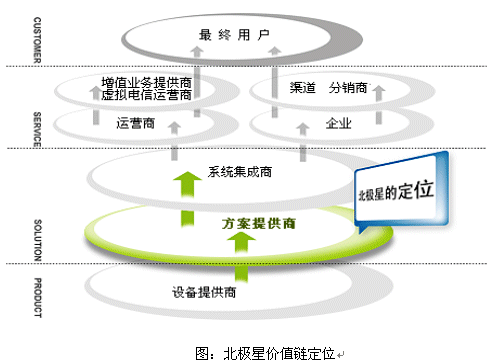北極星軟件創(chuàng)建于1997年。作為專業(yè)的VoIP增值業(yè)務(wù)解決方案供應(yīng)商,北極星軟件秉承“溝通世界(Connecting the world)”的理念,致力于以新技術(shù)推動人和信息的溝通,為電信運營商、虛擬電信運營商、電信增值業(yè)務(wù)運營商和廣大中小企業(yè)提供電信級的VoIP增值方案。