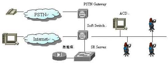 2. 由ACD響應(yīng),并將電話接入IVR(交互語(yǔ)音應(yīng)答系統(tǒng)),詢問客戶需要幫助的類型,并將客戶的語(yǔ)音應(yīng)答傳送到SR Server;
