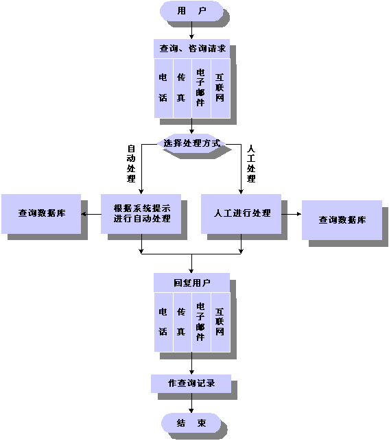 如:可開(kāi)展信息咨詢(xún)業(yè)務(wù),為患者提供具體企業(yè)、事業(yè)單位的信息查詢(xún),包括企業(yè)介紹、產(chǎn)品服務(wù)介紹、價(jià)格、功能、銷(xiāo)售地點(diǎn)、聯(lián)系電話、服務(wù)流程、辦事程序等。實(shí)現(xiàn)的方式包括口頭咨詢(xún)、語(yǔ)音服務(wù)、傳真服務(wù)、E-Mail等。系統(tǒng)對(duì)患者咨詢(xún)的反饋方式有:電話通知、傳真通知、人工回答、電子郵件。