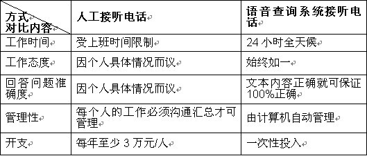 將以往的單位的人工熱線電話轉(zhuǎn)換為計(jì)算機(jī)24小時(shí)自動(dòng)熱線。有效解決服務(wù)態(tài)度、服務(wù)質(zhì)量等敏感問題。咨詢來電只須象以往撥打熱線電話,計(jì)算機(jī)中的語音卡就會(huì)自動(dòng)接通,完成95%以上的人工服務(wù)任務(wù),用戶就可以通過電話這種最簡單、最易用的方式快速獲取信息。