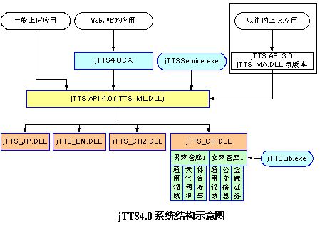 新版本的jTTS_MA.DLL是為了保持向下兼容,它完全繼承原有的jTTS API 3.0的所有函數(shù),不增加也不刪減任何函數(shù)。因此,它也僅能完成以前版本的功能(但可以利用最新的中文引擎,提高聲音質(zhì)量),提供它的目的僅僅在于用戶能夠不改動(dòng)原有程序繼續(xù)運(yùn)行,但如果希望使用新的功能,必須使用jTTS_ML.DLL,利用新的API進(jìn)行開(kāi)發(fā)。