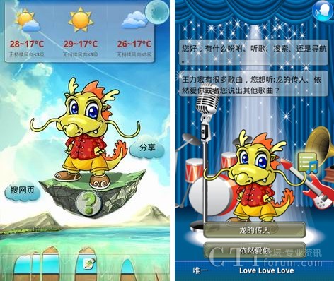 聰明、善解人意的小唐龍基于開放的Android操作系統(tǒng),在捷通華聲全球首個(gè)全方位智能人機(jī)交互(HCI)感知云-靈云平臺(tái)的支持下,會(huì)學(xué)習(xí),善思考,能說會(huì)聽,能寫會(huì)識(shí)。此次正式發(fā)布的小唐龍界面更加清新亮麗,令人耳目一新;獨(dú)一無(wú)二的語(yǔ)音與手寫全方位人機(jī)交互,讓用戶在任何情況下都可以無(wú)障礙的使用小唐龍;重新構(gòu)建設(shè)計(jì)的音樂播放的界面,增加歌詞顯示功能,讓用戶隨心所欲的添加、刪除、選擇、演唱歌曲;新聞播報(bào)清晰自然,流暢動(dòng)聽,新聞內(nèi)容更加豐富,讓天下大事隨時(shí)都掌握在用戶手中;地圖查詢實(shí)現(xiàn)全國(guó)范圍方便快捷的導(dǎo)航、公交查詢、餐飲服務(wù);全國(guó)地區(qū)天氣預(yù)報(bào)等功能的完善,給用戶的生活帶來的極大的便利。全新小唐龍讓手機(jī)助手之名更加名副其實(shí)!