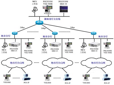 建成后的新湖南省農(nóng)業(yè)銀行視頻會議系統(tǒng)圖