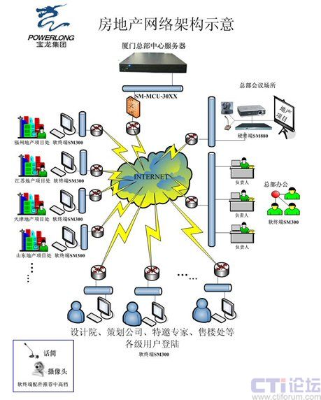 寶龍集團(tuán)在業(yè)內(nèi)進(jìn)行慎重的比較和選擇。首先,該系統(tǒng)不僅能夠支持專線,而且要能兼容寬帶互聯(lián)網(wǎng)。一來專線接入費用比較高;二來如果脫離專線網(wǎng)絡(luò),就會普遍存在帶寬不足、瞬時擁塞、高丟包率等問題,視音頻質(zhì)量很難達(dá)到令用戶滿意的水平。其次,企業(yè)要提高自己的競爭力,成本是一個重要的考慮因素。在綜合各種因素,廣泛論證之后,該公司決定選擇一套軟硬結(jié)合、能在互聯(lián)網(wǎng)上實現(xiàn)高清晰度視頻、高性價比的視頻會議系統(tǒng)。