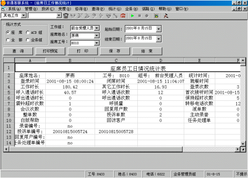 ● 日志記錄及統(tǒng)計(jì)功能:系統(tǒng)能自動(dòng)將客戶(hù)的呼叫記錄、人工座席的服務(wù)記錄、系統(tǒng)的運(yùn)行記錄、系統(tǒng)異常記錄等寫(xiě)入日志,為統(tǒng)計(jì)各坐席的工作量和分析整個(gè)呼叫中心的工作效率和服務(wù)資源瓶頸準(zhǔn)備基礎(chǔ)數(shù)據(jù),在必要時(shí)可生成報(bào)表以備考核。