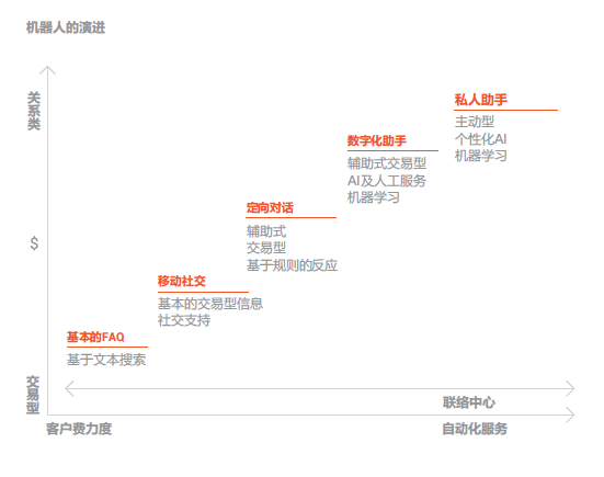 客戶服務(wù)智能化: 就是通過(guò)對(duì)服務(wù)流程的優(yōu)化或改造以支撐AI技術(shù)應(yīng)用最終達(dá)到提升人工效率和客戶體驗(yàn)的過(guò)程。在用戶層面包括:語(yǔ)音或文本聊天機(jī)器人、實(shí)體機(jī)器人、虛擬座席、智能IVR 、智能外呼等。在座席層面包括:智能知識(shí)庫(kù)、智能工單系統(tǒng)、智能營(yíng)銷(xiāo)輔助系統(tǒng)、流程機(jī)器人、座席學(xué)習(xí)系統(tǒng)、座席情緒感知系統(tǒng)等。在管理層面包括:智能質(zhì)檢系統(tǒng)、智監(jiān)控系統(tǒng)、智能 分析系統(tǒng)、智能排班系統(tǒng)等。