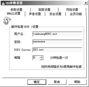 IM和E-mail是我們在網(wǎng)上最常用的兩種工具,如今不少IM軟件將兩者作了完美的結合。在QQ中你可以直接給自己的好友發(fā)郵件,而無須再輸入E-mail地址;此外對于自己的信箱QQ還有檢查新郵件功能,在“系統(tǒng)參數(shù)”中設置您自己的E-mail,填好POP3地址,您可以選擇定時檢查時間,QQ就會自動檢查有否新郵件到達。對于MSN