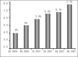 在美國的泡沫經(jīng)濟(jì)破滅、市場極度低迷的時候,歐洲又傳來第三代無線通信技術(shù)——WCDMA因產(chǎn)品、市場等諸多原因全面推遲的消息,這對本來就處于蕭條狀態(tài)的全球通信業(yè)來說,無疑雪上加霜。業(yè)內(nèi)人士在不斷地尋找和探討,究竟什么樣的需求才是目前市場的驅(qū)動力?究竟什么樣的技術(shù)才能真正體現(xiàn)市場價值呢?