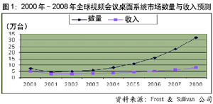 國內(nèi)的研究機構(gòu)也不甘落后,對2002年內(nèi)地視頻會議市場銷售額的預(yù)測高達20億至40億元人民幣不等。而眾多廠商也一致認為,未來的一段時間將成為視頻通信,尤其是視頻會議市場發(fā)展的黃金時期。