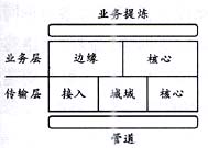 業(yè)務(wù)層的基本功能是在由傳送層提供的“電路”中把負(fù)荷進(jìn)行“整形”并進(jìn)行信息的交換,其目標(biāo)是提升每一個(gè)比特的價(jià)值。業(yè)務(wù)層被橫切為邊緣和核心兩大部分,界線是10萬(wàn)分組/s。在業(yè)務(wù)層,數(shù)據(jù)分組被單獨(dú)處理或者作為“流”(與特定用戶或應(yīng)用相關(guān)的分組串)來處理,老的技術(shù)包括幀中繼和ATM,新的技術(shù)MPLS有可能成為ATM的替代技術(shù)。