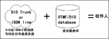 使用ISDN或DID,用戶可以方便地獲得屬于自己的傳真號碼而無須再架設(shè)單獨的物理線路。從電信局申請ISDN或DID服務(wù)后,用戶會獲得一組電話號碼,然后將號碼分配給用戶或部門,再安裝相應(yīng)的ISDN或DID卡。當(dāng)有傳真撥入時,ISDN或DID卡會自動檢測對方撥的是哪一個號碼,并將號碼通知給傳真服務(wù)器。傳真服務(wù)器查詢用戶數(shù)據(jù)庫,然后將傳真轉(zhuǎn)給擁有該號碼的用戶,如圖1所示。