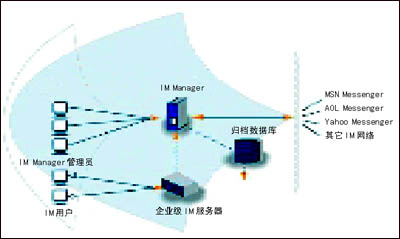 除了這些產(chǎn)業(yè)巨頭以外,巨大的IM管理市場(chǎng)也培育了許多專業(yè)的IM管理廠商。這些廠商的產(chǎn)品可以外掛至大公司的IM服務(wù)平臺(tái),從而為企業(yè)用戶提供IM管理解決方案。IMlogic就是這樣一家公司,它的IM Manager產(chǎn)品可以管理來自微軟、雅虎、IBM、AOL以及Jabber等等公司的IM平臺(tái)。