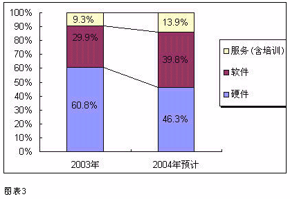 大型企業(yè)軟件投入比例將從2003年占總體投資額的29.9%、2004年增長到39.8%;
