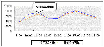 除了特定情況下的電話呼入(客戶看了廣告后致電)外,一般而言呼入業(yè)務(wù)只能保持或提高客戶對(duì)公司的滿意度,但卻不能直接為公司帶來(lái)經(jīng)濟(jì)收益,這也是常常讓管理人員困惑的一個(gè)原因-呼叫中心為什么總是一個(gè)成本中心?而呼出業(yè)務(wù)所帶來(lái)的經(jīng)濟(jì)效益卻是非常明顯的,特別是在大型的呼叫中心,由于呼入電話的數(shù)量與排班人數(shù)的實(shí)際處理量始終會(huì)有一些差距,如果能將這些時(shí)段用來(lái)做呼出業(yè)務(wù)的話(某些系統(tǒng)可以根據(jù)話務(wù)量情況自動(dòng)在呼出/呼入模式之間進(jìn)行轉(zhuǎn)換),對(duì)于提高勞動(dòng)效率將有很大幫助,又間接為企業(yè)節(jié)省了人力成本。如下圖所示: