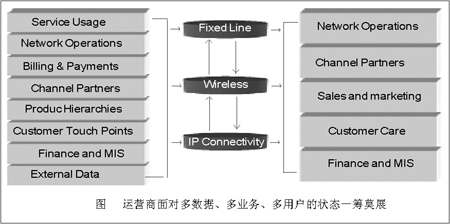 “很淺顯地說(shuō),就目前國(guó)內(nèi)運(yùn)營(yíng)商的分析水平而言,問(wèn)題并不是出在工具上,對(duì)于一些省級(jí)運(yùn)營(yíng)商而言,無(wú)論是集成商、還是系統(tǒng),都可以說(shuō)已經(jīng)采用了全球領(lǐng)先供應(yīng)商的產(chǎn)品,但具體到業(yè)務(wù)上,由于長(zhǎng)期以來(lái)的模式尚未改變,有可能到客戶調(diào)查時(shí)才發(fā)現(xiàn),電話占用號(hào)碼的客戶已經(jīng)停機(jī)了,而調(diào)查人員卻不能實(shí)時(shí)看到業(yè)務(wù)收入表,更準(zhǔn)確地說(shuō),針對(duì)同一客戶,他用了哪些業(yè)務(wù)?是單一業(yè)務(wù)還是多種業(yè)務(wù)?是優(yōu)惠業(yè)務(wù)還是正常業(yè)務(wù)?服務(wù)坐席都有可能無(wú)法立即獲得實(shí)時(shí)數(shù)據(jù),這樣的前提下,再怎么說(shuō)計(jì)費(fèi)系統(tǒng)、融合業(yè)務(wù)、服務(wù)質(zhì)量,都不具現(xiàn)實(shí)意義!鄙綎|網(wǎng)通計(jì)費(fèi)部門(mén)一位不愿意透露姓名的副主任級(jí)主管告訴記者。