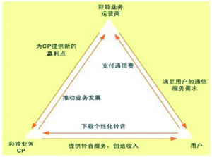 如今,韓國的彩鈴業(yè)務(wù)已遍地開花,超過50%的手機(jī)用戶在使用彩鈴服務(wù),運營商因此每月能獲得1500萬美元的收益。小彩鈴喚來了大市場。個人用戶無需購買昂貴的終端就可通過彩鈴業(yè)務(wù)向外界傳遞個性和情感。商業(yè)用戶將回鈴音設(shè)置成廣告/宣傳語,使客戶在與企業(yè)員工交流的同時接收企業(yè)的相關(guān)信息,例如企業(yè)文化、產(chǎn)品、銷售信息等,直接或間接地增加了企業(yè)的市場機(jī)會。彩鈴業(yè)務(wù)為運營商帶來了直接的經(jīng)濟(jì)收益,也帶來了特征用戶群,在語音增值業(yè)務(wù)中實現(xiàn)了產(chǎn)業(yè)鏈合作。同時,運營商通過對特征用戶群的研究分析發(fā)現(xiàn)了未來商機(jī),并通過在語音增值業(yè)務(wù)產(chǎn)業(yè)鏈中引入ICP/ISP達(dá)到了資源的有效利用。