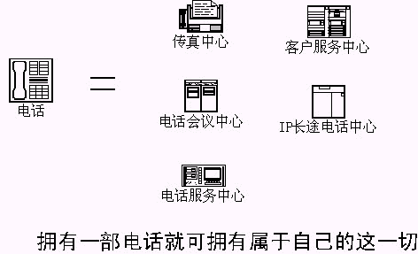 該方法的實(shí)施,可以讓每一個(gè)電話和強(qiáng)大的CTI系統(tǒng)聯(lián)系,一部電話將變成語(yǔ)音系統(tǒng)、傳真系統(tǒng)、電話會(huì)議系統(tǒng)、……。擁有這一切用戶只需要支付呼叫轉(zhuǎn)移的費(fèi)用?梢栽O(shè)想,以后開辦公司,只要申請(qǐng)電話,擁有ADSL上網(wǎng)的電腦,用戶在辦公室、在家,打開電腦,單擊進(jìn)入自己的語(yǔ)音系統(tǒng)、會(huì)議系統(tǒng),宣傳公司,召開會(huì)議,發(fā)送傳真。公司擁有、使用自己的、電信級(jí)的CTI系統(tǒng);所有CTI應(yīng)用系統(tǒng)的開發(fā),語(yǔ)音部分完全由電話接入服務(wù)商提供,……。