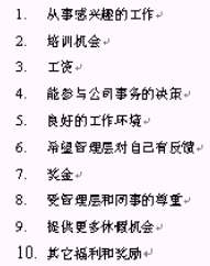 在對員工關心的十個指標的調研、統(tǒng)計分析后發(fā)現(xiàn),在企業(yè)提供良好的培訓體系前提下,人員的流失與企業(yè)提供的薪酬有必然的關系。各因素影響程度由高到低排序如下: