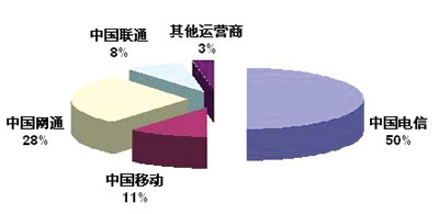 2005年中國NGN收入的主要的市場份額獲得者是在固網(wǎng)資源上有絕對優(yōu)勢地位的中國電信,其次是網(wǎng)通,2006年以后隨著3G網(wǎng)絡(luò)的部署,廣義的NGN業(yè)務(wù)的收入上,中國移動(dòng)的市場份額會逐步上升。