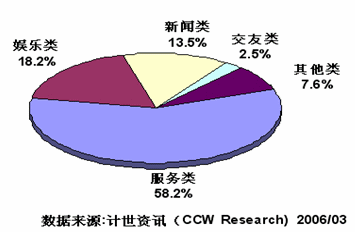 2006年,IVR業(yè)務的發(fā)展已經(jīng)具備了良好的外部條件。首先,具有龐大的潛在用戶群。有關統(tǒng)計顯示,截至2005年11月,中國移動用戶數(shù)量達到3.88億,固定電話用戶數(shù)量達到3.51億,其中無線市話用戶數(shù)量達到8622萬。其次,市場容量急劇膨脹;再次,業(yè)務收入快速增長;最后,IVR不受手機型號的限制,潛在用戶的普及率極高。這些使得IVR具有良好的發(fā)展?jié)摿Γ嬍蕾Y訊(CCW Research)認為,IVR是繼短信(SMS)之后的又一座大型金礦。