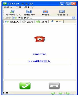 現(xiàn)在你的安裝工作已經(jīng)完成了,如果有 Skype客戶撥打ITA-Demo就會(huì)聽到“歡迎致電某某公司,產(chǎn)品咨詢請撥15,產(chǎn)品訂購請撥16,人工服務(wù)請撥0”的語音提示(在交換機(jī)上設(shè)定的語音)。