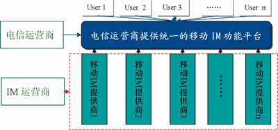 為了能夠使移動(dòng)IM有效占據(jù)在未來競(jìng)爭(zhēng)中的主動(dòng)地位,運(yùn)營(yíng)商就必須在自有網(wǎng)絡(luò)上對(duì)移動(dòng)IM功能進(jìn)行統(tǒng)一和標(biāo)準(zhǔn)化,并對(duì)其他的移動(dòng)IM予以限制和管理,以便形成合力,實(shí)現(xiàn)其既定目標(biāo)。