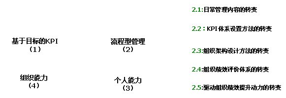 5. 驅(qū)動(dòng)組織業(yè)績(jī)發(fā)展動(dòng)力的轉(zhuǎn)變:組織由原先的注重個(gè)人能力的提升,轉(zhuǎn)變?yōu)楦匾暯M織能力的建設(shè),管理者要更重視對(duì)組織層次特性的管理,而不僅是個(gè)體層次特性的管理。