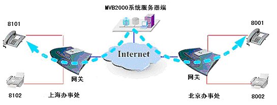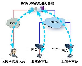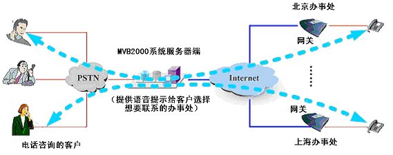 MVB2000最大特點之一:特別適合組建基于IP的分布式呼叫中心,遠端可以用標(biāo)準的IAX2/H.323/SIP協(xié)議的IP話機或者語音網(wǎng)關(guān)。本地分機無法應(yīng)答的咨詢問題,可以直接轉(zhuǎn)接到遠端的分機來回答,提供遠程服務(wù)。