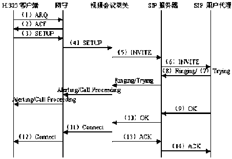 圖2 H.323客戶端邀請SIP用戶代理的流程