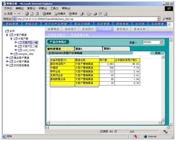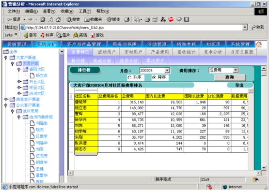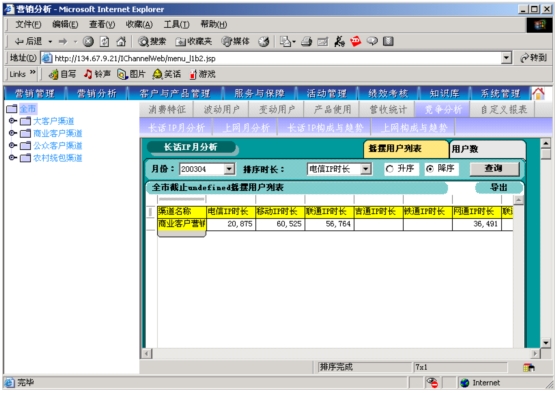 本系統(tǒng)是以市場為導向、客戶為中心、效益為目標的電信營銷和服務的支撐系統(tǒng),為企業(yè)經(jīng)營服務和營銷戰(zhàn)略提供有力的支撐,通過對業(yè)務收入、業(yè)務發(fā)展以及市場競爭的深入分析,從而達到留住老客戶、發(fā)現(xiàn)新客戶,了解競爭對手動態(tài),及時掌握市場變化趨勢的目的。