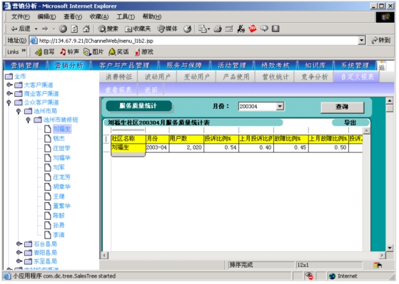 對于客戶的故障、投訴,營銷服務支撐系統(tǒng)及時從1000號客戶服務系統(tǒng)獲取信息,及時獲取派發(fā)的工單,及時解決客戶問題,并能夠跟蹤故障、投訴解決情況。通過數(shù)據(jù)分析,掌握企業(yè)的服務質(zhì)量。