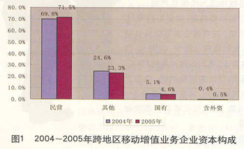 電信市場(chǎng)的開放吸引了大量中小企業(yè),而他們進(jìn)入的領(lǐng)域也大多集中在增值服務(wù)市場(chǎng)。目前,中國的電信增值服務(wù)市場(chǎng)的各類中小企業(yè)已達(dá)到上萬家,業(yè)務(wù)范圍幾乎涉及全部增值領(lǐng)域,成為通信經(jīng)營服務(wù)業(yè)務(wù)的重要組成部分。在1.4萬家電信增值企業(yè)中,民營企業(yè)比例占到55.37%,民營資本已經(jīng)成為該市場(chǎng)的主體。